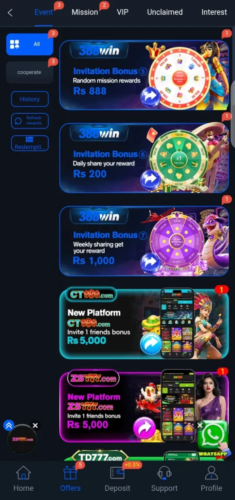 The bonus system in 388WIN is designed to keep users engaged and motivated. New players often receive a welcome bonus which gives them a starting balance. Daily rewards encourage regular use of the app.