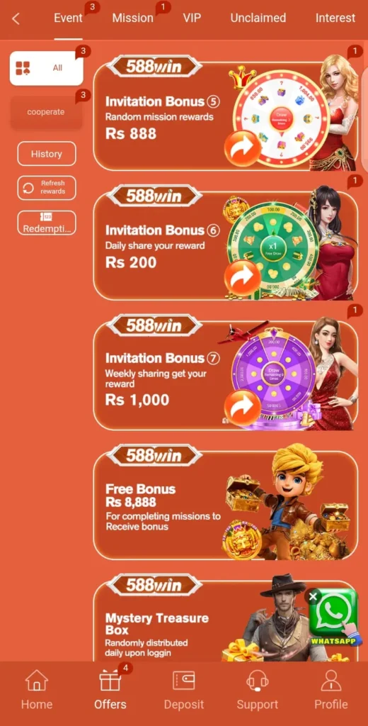 588 Win App supports common payment methods like Jazz Cash and Easy Paisa. Transactions are simple and usually processed within a short time.