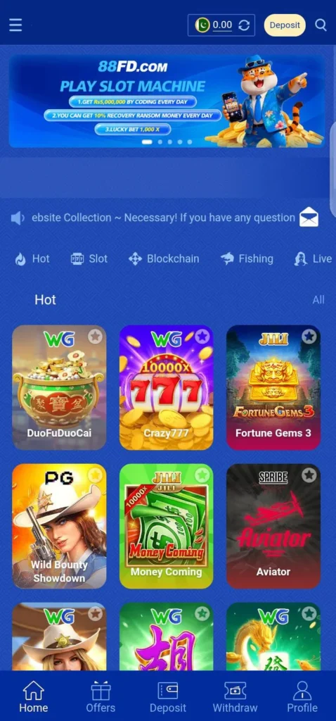 Many users are attracted to 88 FD Game because it allows players to deposit money, play games, and withdraw their winnings using digital payment methods. However, most of the games are based on luck, and there is always a risk of losing money. It is important to play responsibly, set personal limits, and remember that such platforms should be used mainly for entertainment rather than as a guaranteed way to earn income.