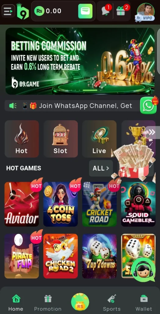 In my opinion, B9 App provides an engaging gaming experience with a simple layout. The dashboard is easy to understand, and new users can navigate through games without much confusion. The performance of the app is generally smooth on most Android devices.
