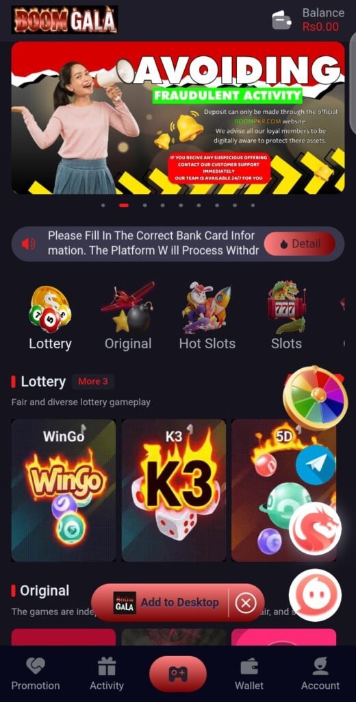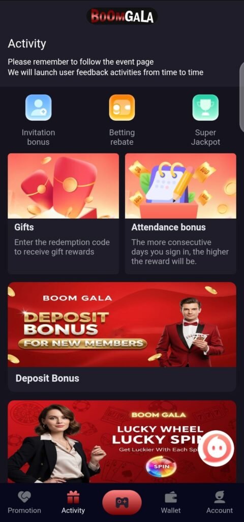 Boom Gala Game rewards its users with daily login bonuses and special promotional rewards. These bonuses give players extra balance to play games and test strategies without risking their own money every time. Regular bonuses also motivate users to stay active on the platform.