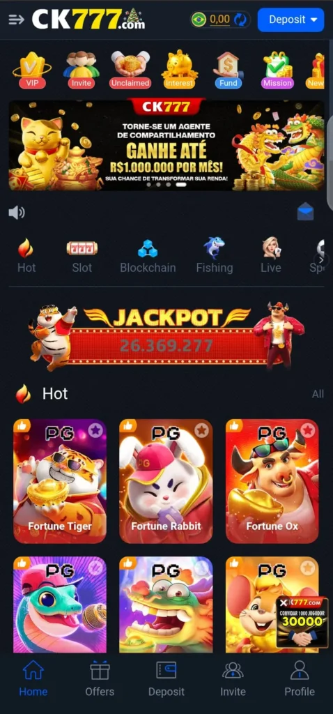 CK777 App is an online gaming platform that provides several casino-style games for mobile users. The application allows players to register an account, deposit money, and participate in different games available on the platform.