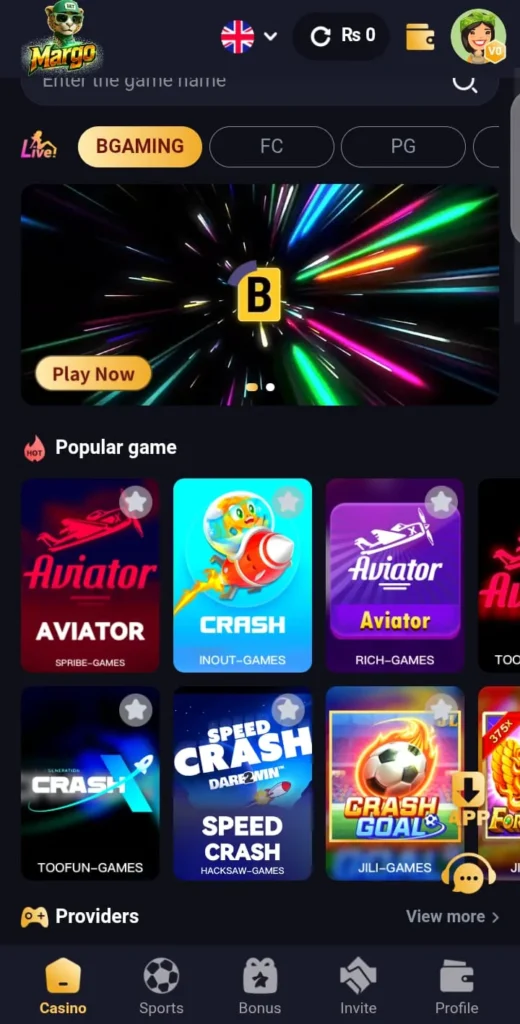 Margo Game is a mobile app where users can play mini-games like Aviator, Plinko, and slot-themed challenges. It is popular because of its simple interface, fast registration, and variety of games, giving players a mix of fun and the chance to earn small rewards.