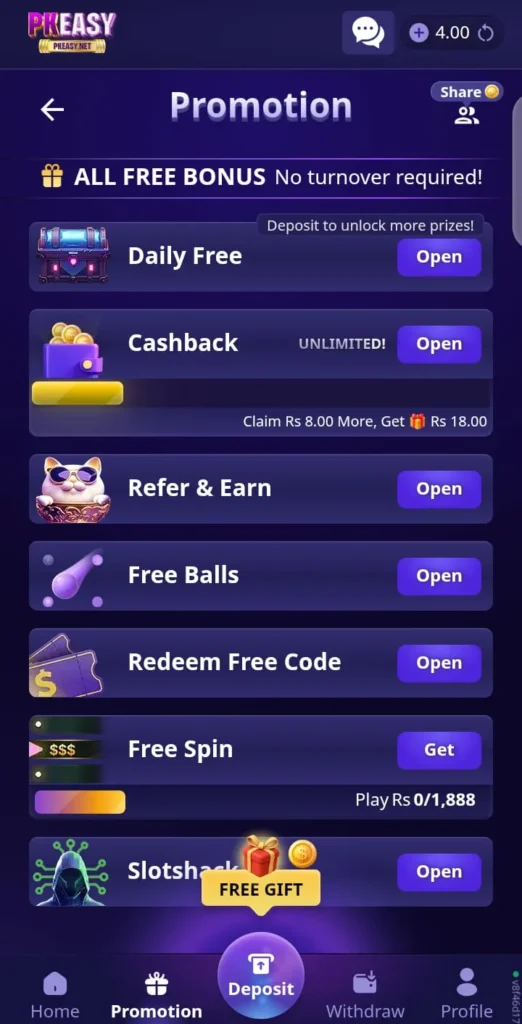 Users can earn daily rewards just by logging into the app every day. These rewards may include points, bonuses, or small incentives for regular activity.