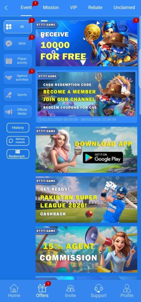 ST 777 has a clean and simple interface that is very easy to navigate. Even beginners can understand it quickly. Players can start games without any confusion and enjoy smooth app experience on mobile devices.